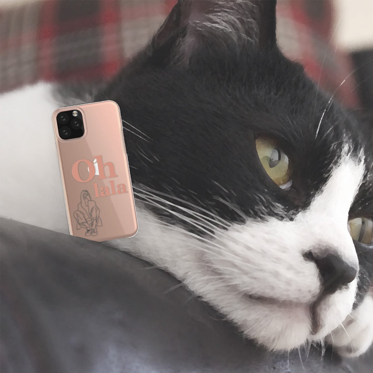 今回は女の子のイラストと、「Oh lala」「Ah bon」「Non merci」と少し気怠い言葉を添えてみました。