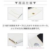 オトナかわいいデザインの、三つ折り式の手帳型ケースです。