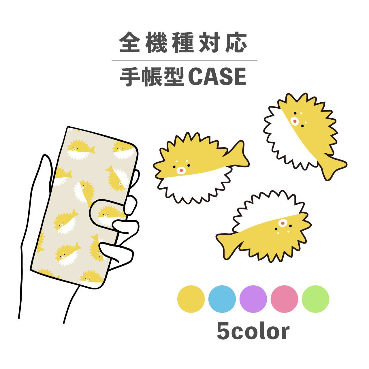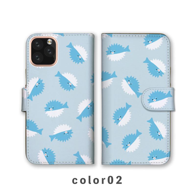 スマホケース手帳型 おしゃれ 韓国 可愛い なんでも対応 iPhone15 iPhone14 iPhoneSE Google Pixel エクスペリア ギャラクシー おもしろい 海 海の生き物 ハリセンボン イエロー ピンク グリーン ブルー パープル