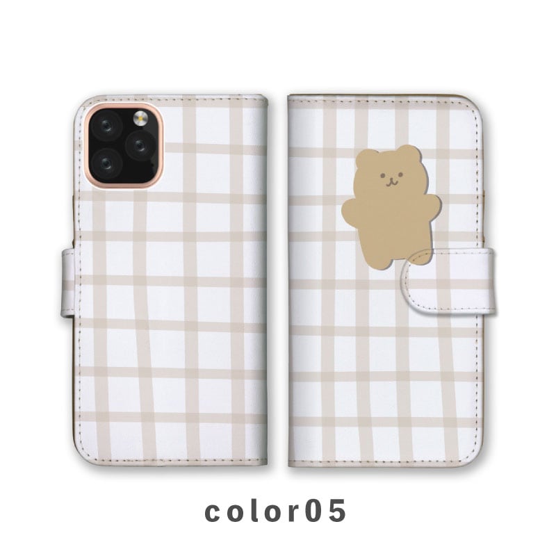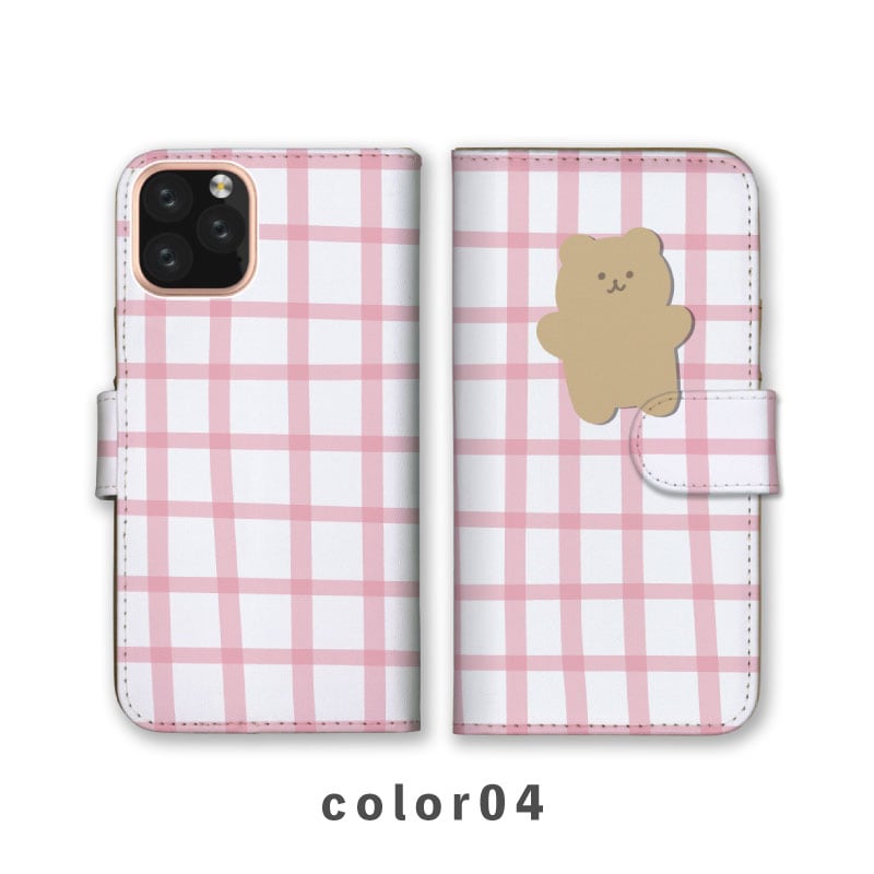 スマホケース手帳型 おしゃれ 韓国 可愛い なんでも対応 iPhone15 iPhone14 iPhoneSE Google Pixel エクスペリア ギャラクシー おもしろい くま 熊 チェック柄 柄物 動物 陸の生き物 イラスト 手書き パステルカラー