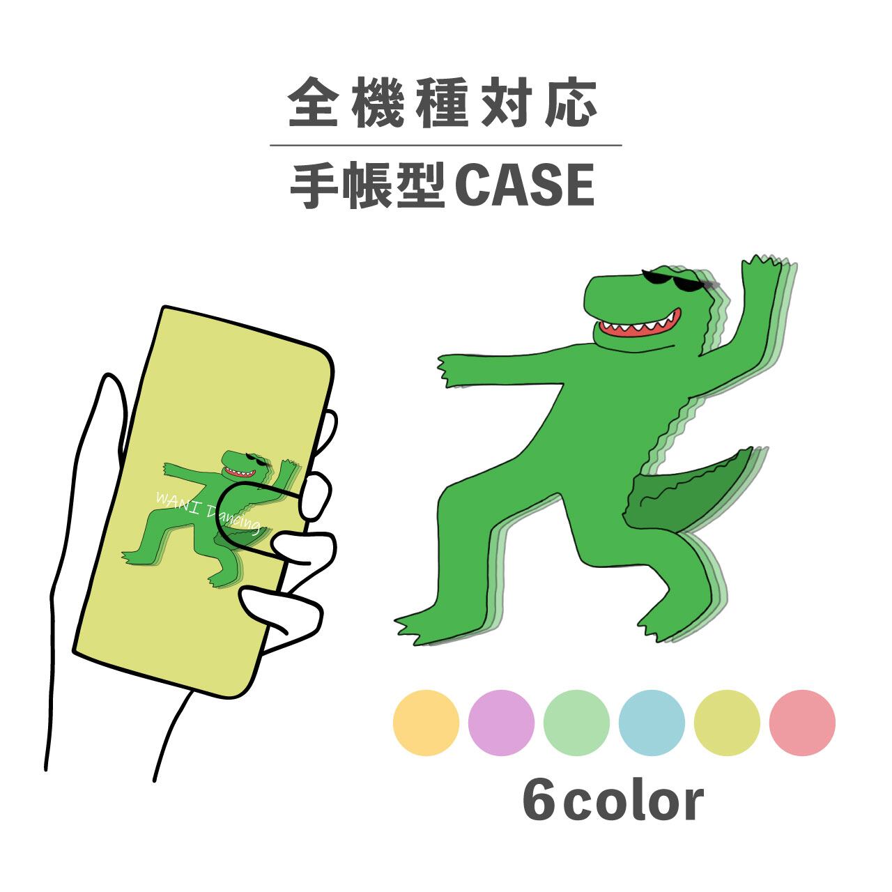 スマホケース手帳型 おしゃれ 韓国 可愛い なんでも対応 iPhone15 iPhone14 iPhoneSE Google Pixel エクスペリア ギャラクシー おもしろい ワニ わに ダンス 手書き イラスト 動物 陸の生き物 ポップ パステルカラー