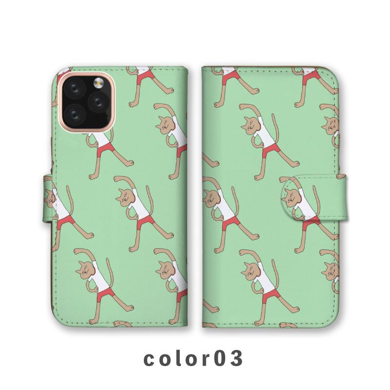 スマホケース手帳型 おしゃれ 韓国 可愛い なんでも対応 iPhone15 iPhone14 iPhoneSE Google Pixel エクスペリア ギャラクシー おもしろい ねこ 猫 体操 手書き風 動物 陸の生き物 かわいい くすみカラー