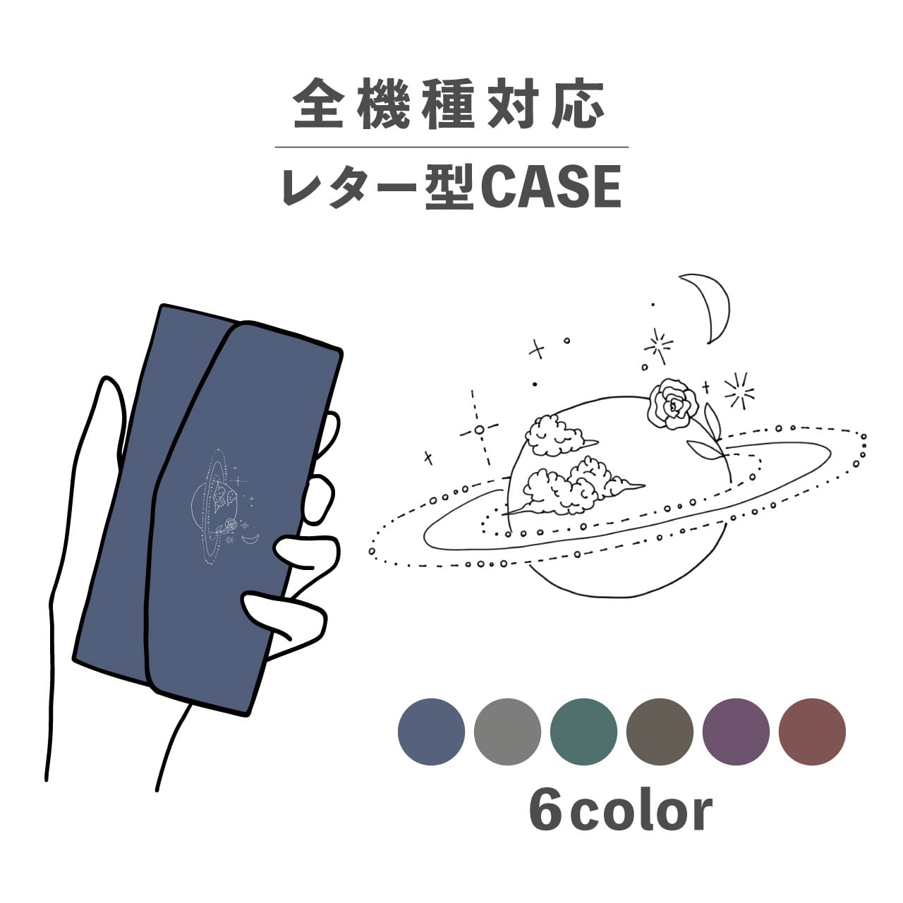 スマホケース手帳型 おしゃれ 韓国 可愛い なんでも対応 レター型 iPhone15 iPhone14 iPhoneSE Google Pixel エクスペリア ギャラクシー おもしろい 惑星 太陽系 土星 サターン 宇宙 手書き風 ワンポイント ポップ ダークカラー シンプル