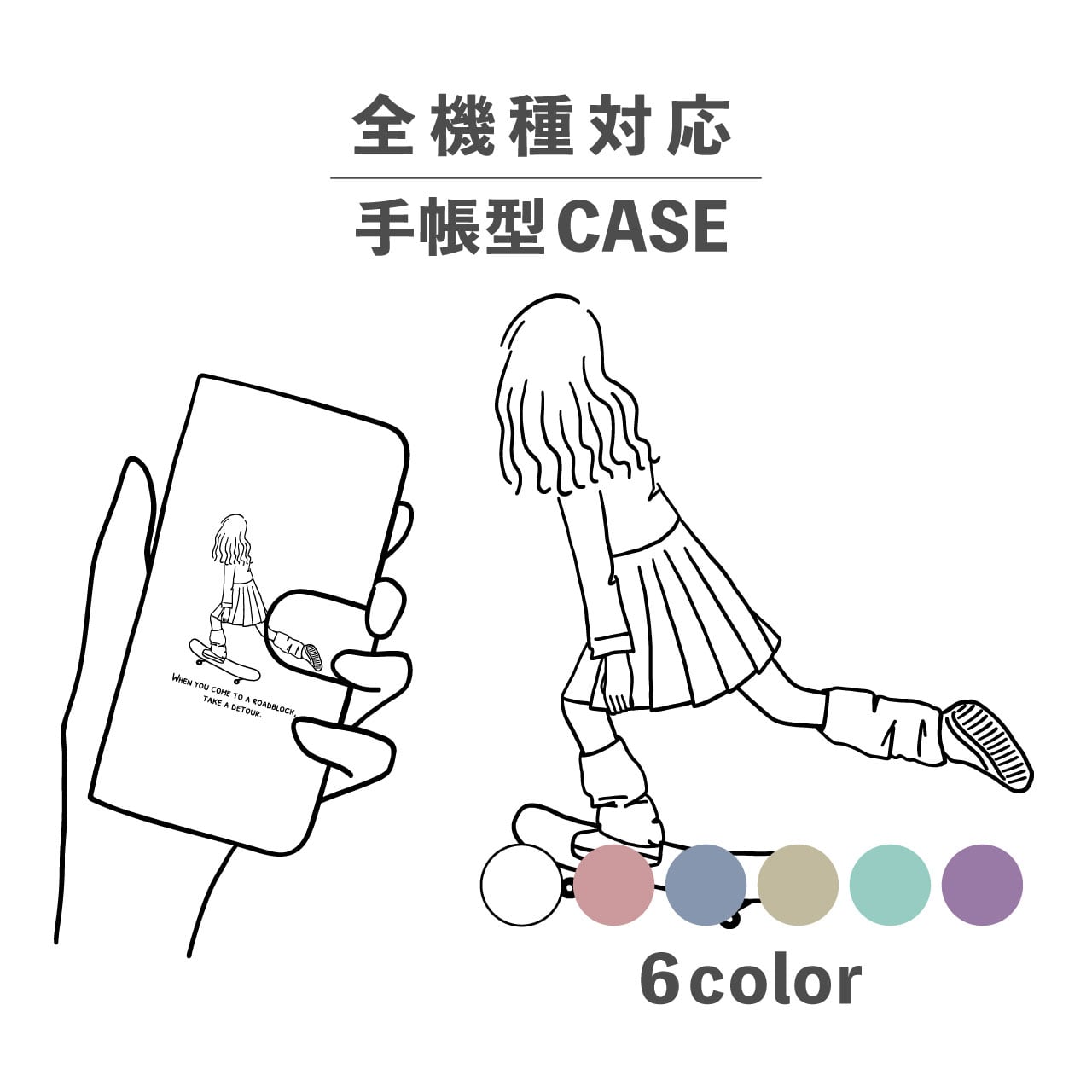 スマホケース手帳型 おしゃれ 韓国 可愛い なんでも対応 iPhone15 iPhone14 iPhoneSE Google Pixel エクスペリア ギャラクシー おもしろい スケボ スケートボード サブカル 人間 女の子 ストリート イラスト 手書き 線画