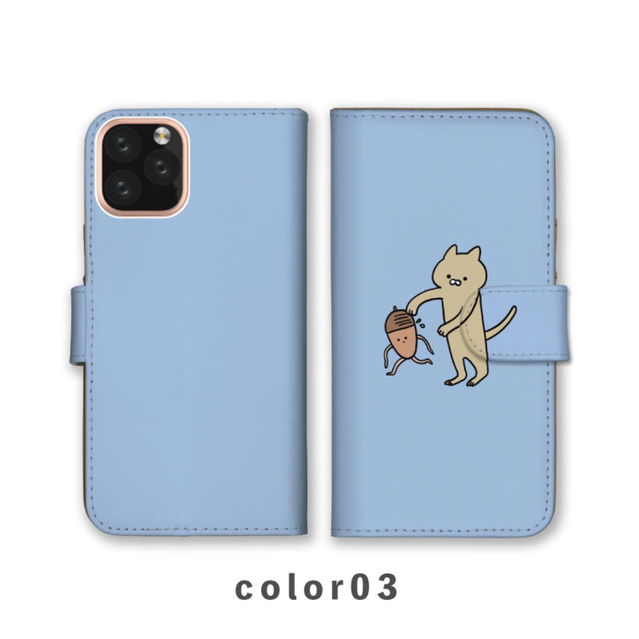 スマホケース手帳型 おしゃれ 韓国 可愛い なんでも対応 iPhone15 iPhone14 iPhoneSE Google Pixel エクスペリア ギャラクシー おもしろい 猫 ねこ ネコ どんぐり 秋 手書き イラスト シュール 動物 アニマル くすみカラー