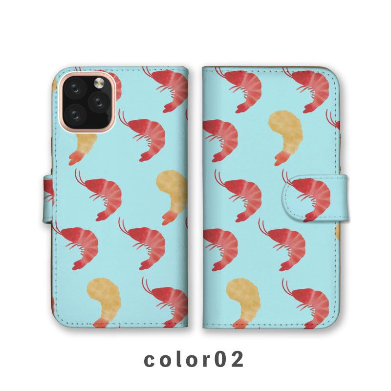 スマホケース手帳型 おしゃれ 韓国 可愛い なんでも対応 iPhone15 iPhone14 iPhoneSE Google Pixel エクスペリア ギャラクシー おもしろい エビ 生エビ エビフライ 総柄 パターン 水彩 手書き イラスト 食べ物 海の生き物