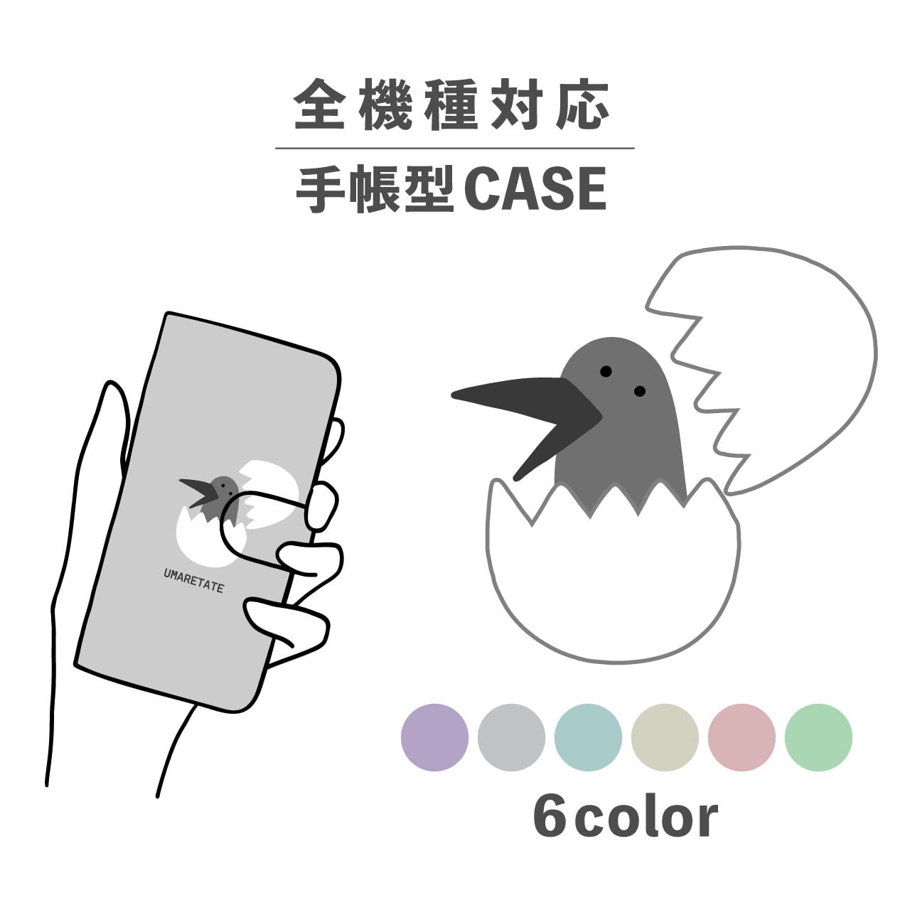 スマホケース手帳型 おしゃれ 韓国 可愛い なんでも対応 iPhone15 iPhone14 iPhoneSE Google Pixel エクスペリア ギャラクシー おもしろい カラス 烏 鳥 赤ちゃん 手書き シュール タマゴ 卵 動物 生き物 ポップ 横顔 ギザギザ