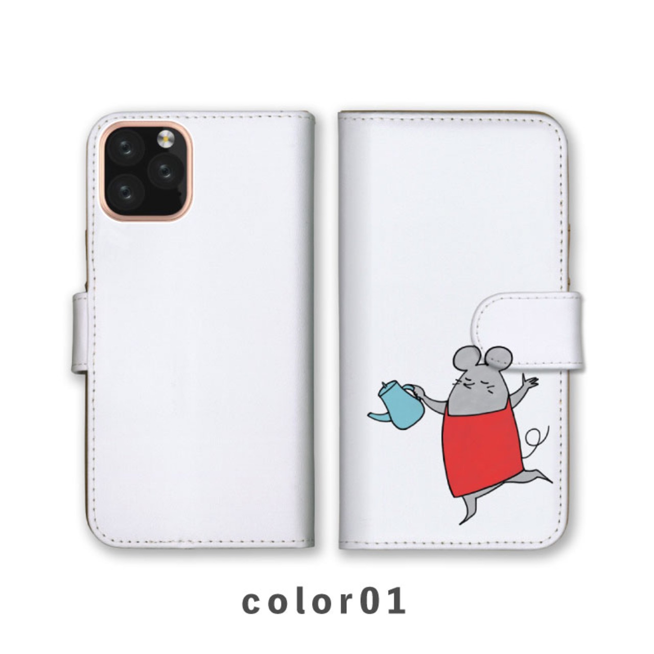 スマホケース手帳型 おしゃれ 韓国 可愛い なんでも対応 iPhone15 iPhone14 iPhoneSE Google Pixel エクスペリア ギャラクシー おもしろい ネズミ 鼠 エプロン じょうろ 北欧 シュール 手書き ポップ クレヨン 動物 アニマル