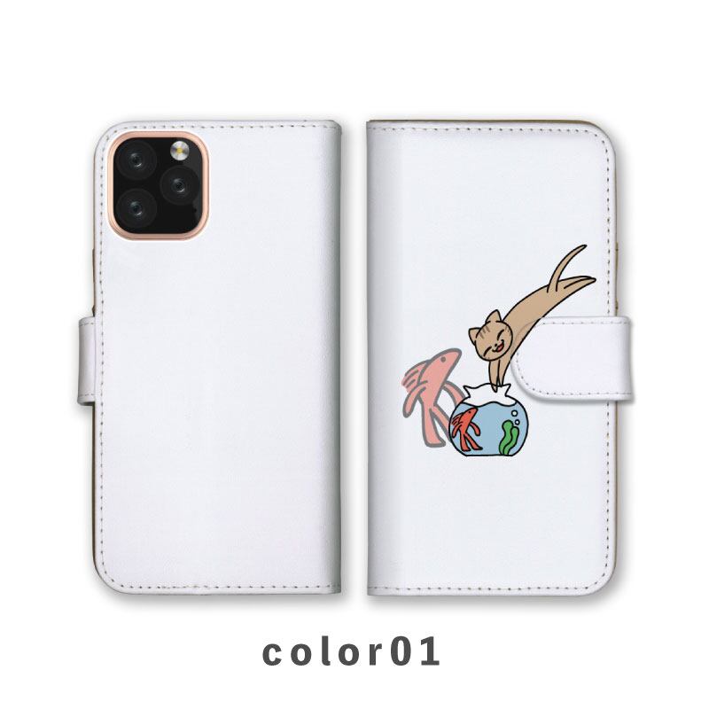 スマホケース手帳型 おしゃれ 韓国 可愛い なんでも対応 iPhone15 iPhone14 iPhoneSE Google Pixel エクスペリア ギャラクシー おもしろい 金魚 ねこ 猫 ネコ 金魚鉢 イラスト 手描き ゆる 動物 アニマル くすみカラー