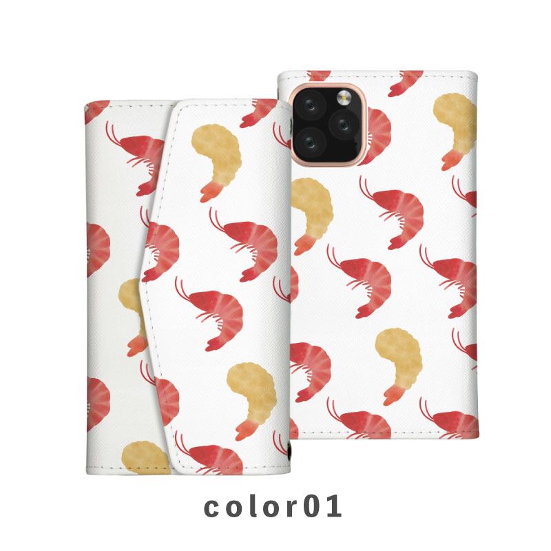 スマホケース手帳型 おしゃれ 韓国 可愛い なんでも対応 レター型 iPhone15 iPhone14 iPhoneSE Google Pixel エクスペリア ギャラクシー おもしろい エビ 生エビ エビフライ 総柄 パターン 水彩 手書き イラスト 食べ物 海の生き物