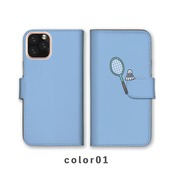 スマホケース手帳型 おしゃれ 韓国 可愛い なんでも対応 iPhone15 iPhone14 iPhoneSE Google Pixel エクスペリア ギャラクシー おもしろい バドミントン ラケット スポーツ スマイル イラスト 手書き くすみカラー ゆる ペールトーン