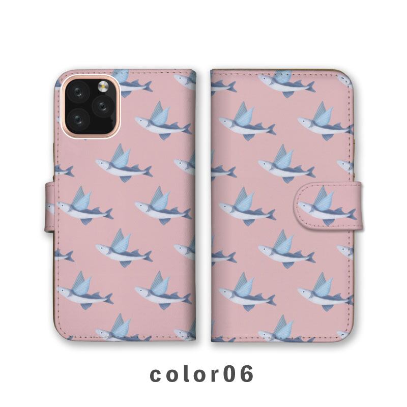 スマホケース手帳型 おしゃれ 韓国 可愛い なんでも対応 iPhone15 iPhone14 iPhoneSE Google Pixel エクスペリア ギャラクシー おもしろい トビウオ 魚 海の生き物 羽 ブルー イラスト 手書き くすみカラー パターン 総柄 色鉛筆風