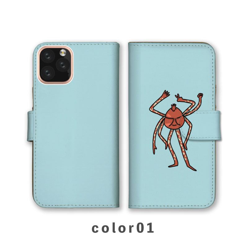 スマホケース手帳型 おしゃれ 韓国 可愛い なんでも対応 iPhone15 iPhone14 iPhoneSE Google Pixel エクスペリア ギャラクシー おもしろい タカアシガニ カニ 蟹 海の生き物 イラスト 手書き くすみカラー 魚 ブルー じゃんけん
