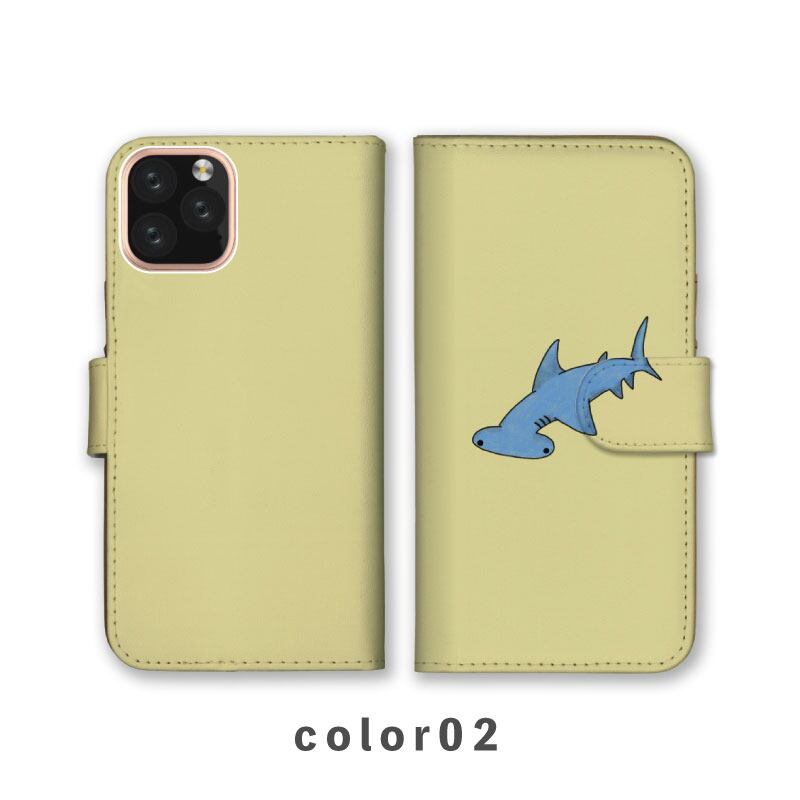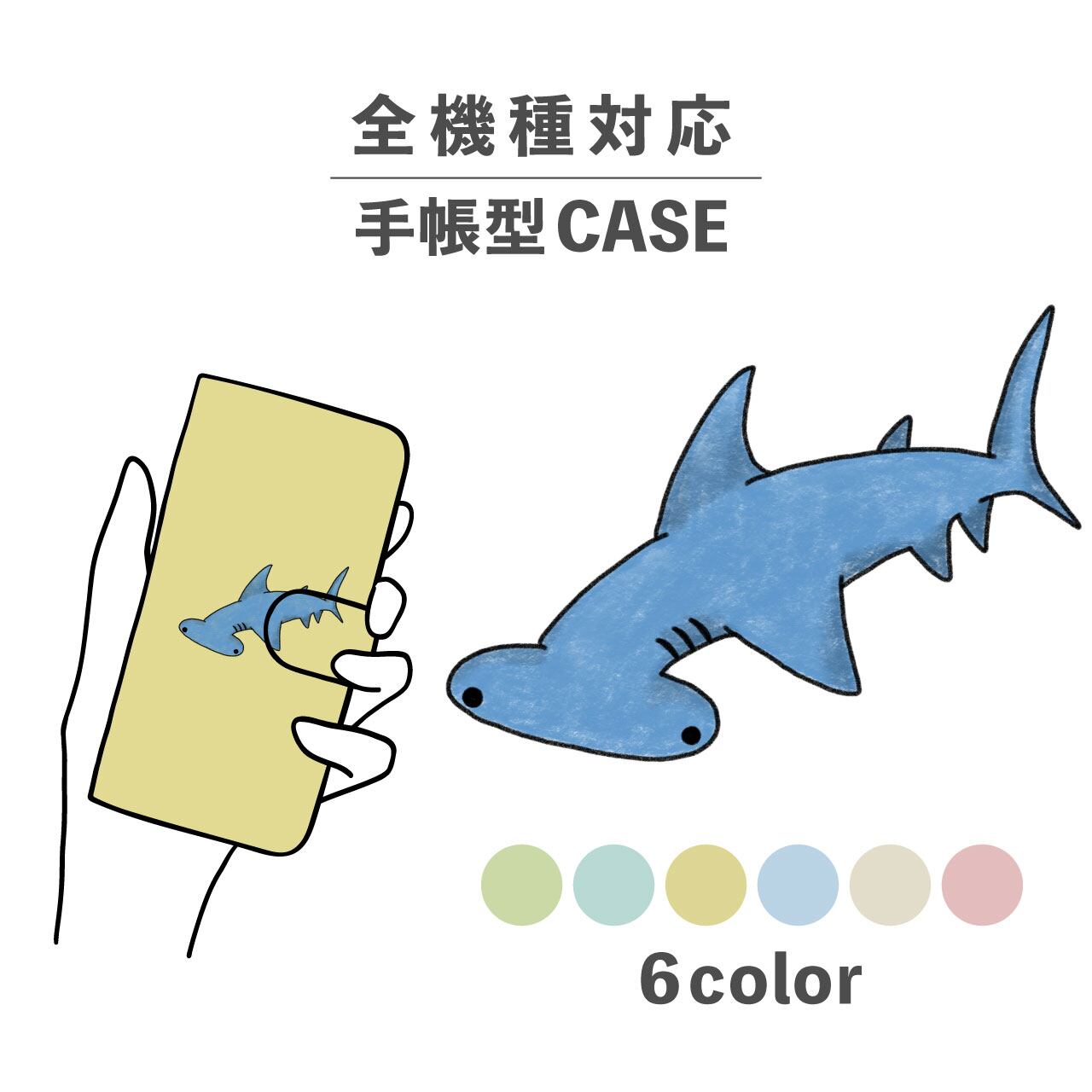 スマホケース手帳型 おしゃれ 韓国 可愛い なんでも対応 iPhone15 iPhone14 iPhoneSE Google Pixel エクスペリア ギャラクシー おもしろい シュモクザメ サメ 海の生き物 イラスト 手書き くすみカラー 魚 ブルー ペールトーン