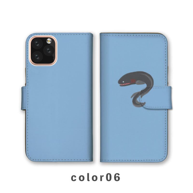 スマホケース手帳型 おしゃれ 韓国 可愛い なんでも対応 iPhone15 iPhone14 iPhoneSE Google Pixel エクスペリア ギャラクシー おもしろい ラブカ 深海魚 海の生き物 魚 ゆる 手書き イラスト くすみカラー ダークカラー ブルー