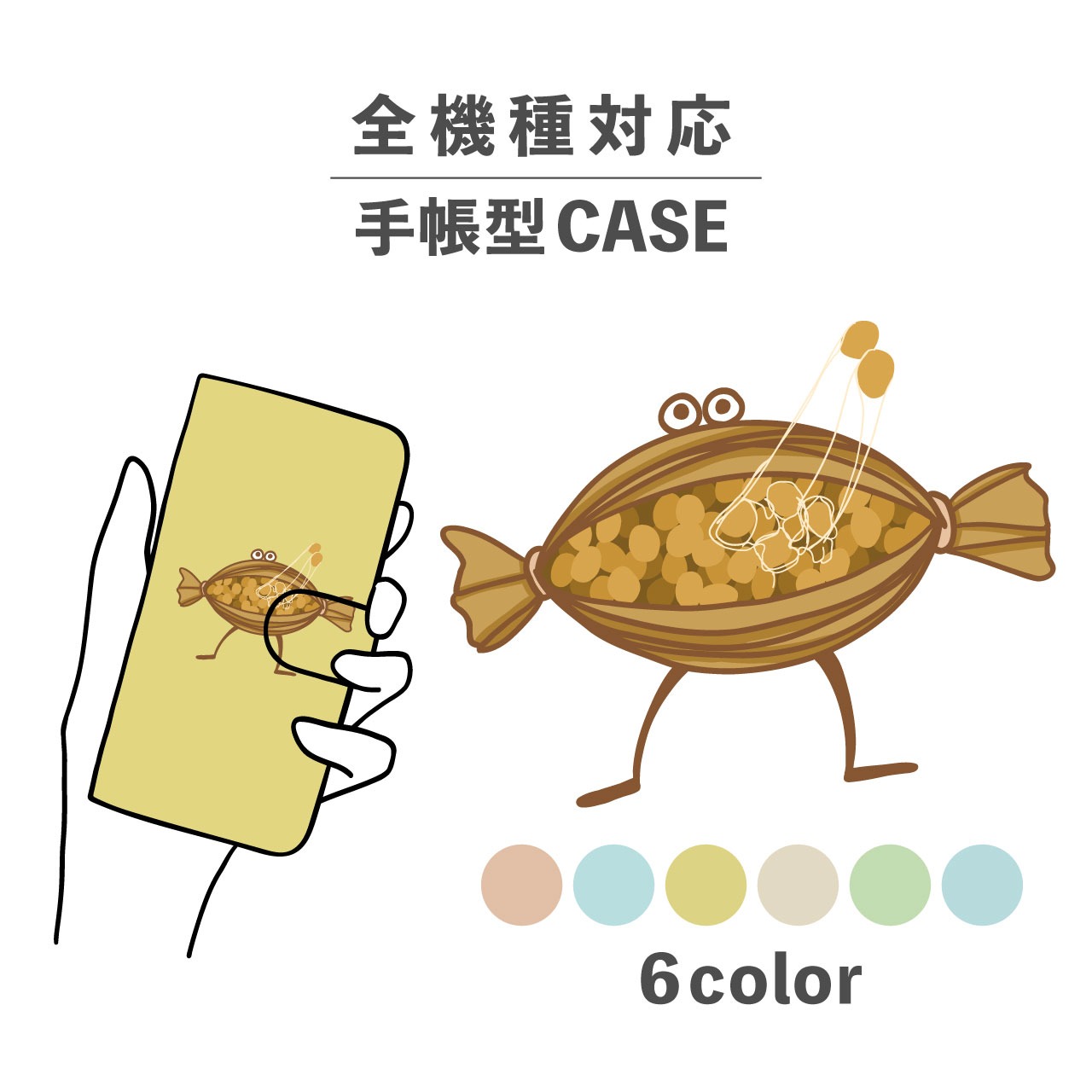 スマホケース手帳型 おしゃれ 韓国 可愛い なんでも対応 iPhone15 iPhone14 iPhoneSE Google Pixel エクスペリア ギャラクシー おもしろい 納豆 和食 日本食 豆 食べ物 イラスト 手書き ねばねば ゆる 擬人化 ブラウン