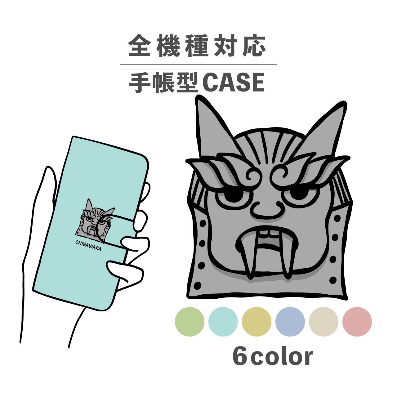 スマホケース手帳型 おしゃれ 韓国 可愛い なんでも対応 iPhone15 iPhone14 iPhoneSE Google Pixel エクスペリア ギャラクシー おもしろい 鬼瓦 鬼 灰色 グレー 瓦 イラスト 手書き ワンポイント くすみカラー 牙 イエロー
