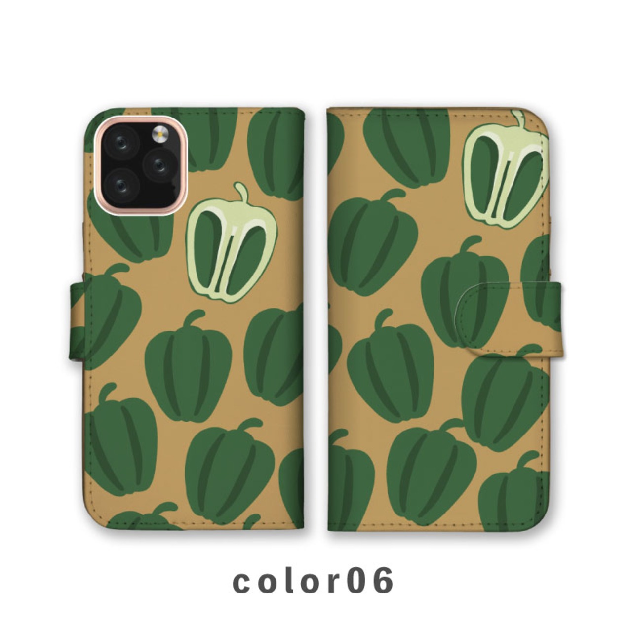 スマホケース手帳型 おしゃれ 韓国 可愛い なんでも対応 iPhone15 iPhone14 iPhoneSE Google Pixel エクスペリア ギャラクシー おもしろい ピーマン 野菜 大人かわいい 北欧 総柄 グリーン くすみカラー バイカラー