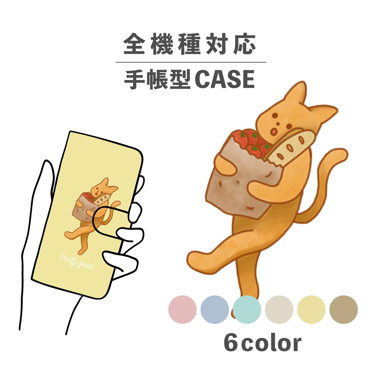 スマホケース手帳型 おしゃれ 韓国 可愛い なんでも対応 iPhone15 iPhone14 iPhoneSE Google Pixel エクスペリア ギャラクシー おもしろい ねこ ネコ 猫 イラスト 手書き 買い物袋 動物 バゲット トマト ベージュ ゆる