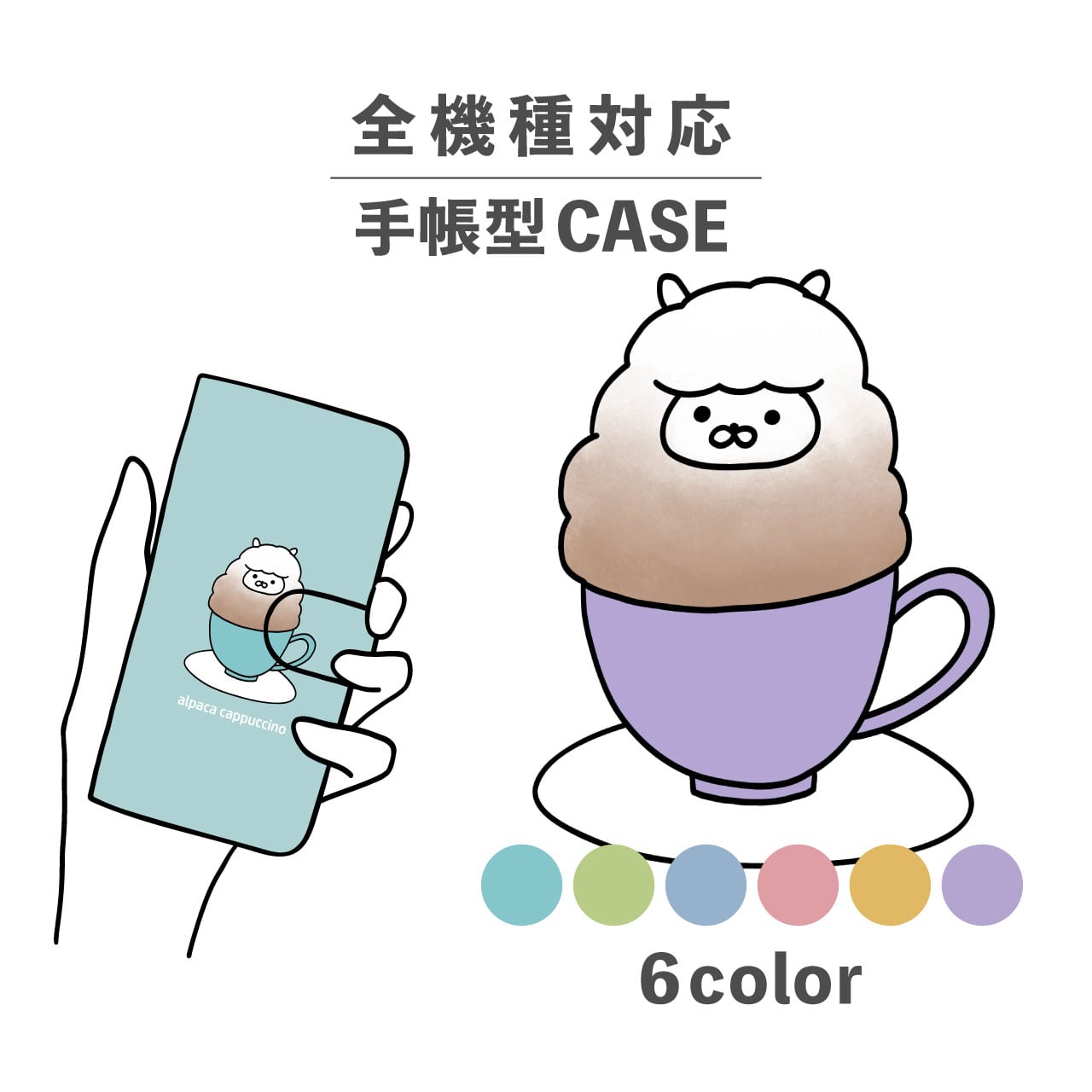 スマホケース手帳型 おしゃれ 韓国 可愛い なんでも対応 iPhone15 iPhone14 iPhoneSE Google Pixel エクスペリア ギャラクシー おもしろい アルパカ イラスト 手書き 動物 アニマル カップ コップ ラテアート くすみカラー
