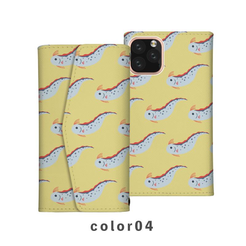 スマホケース手帳型 おしゃれ 韓国 可愛い なんでも対応 レター型 iPhone15 iPhone14 iPhoneSE Google Pixel エクスペリア ギャラクシー おもしろい 魚 リュウグウノツカイ 深海 海の生き物 イラスト 総柄 手書き くすみカラー ゆる