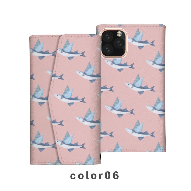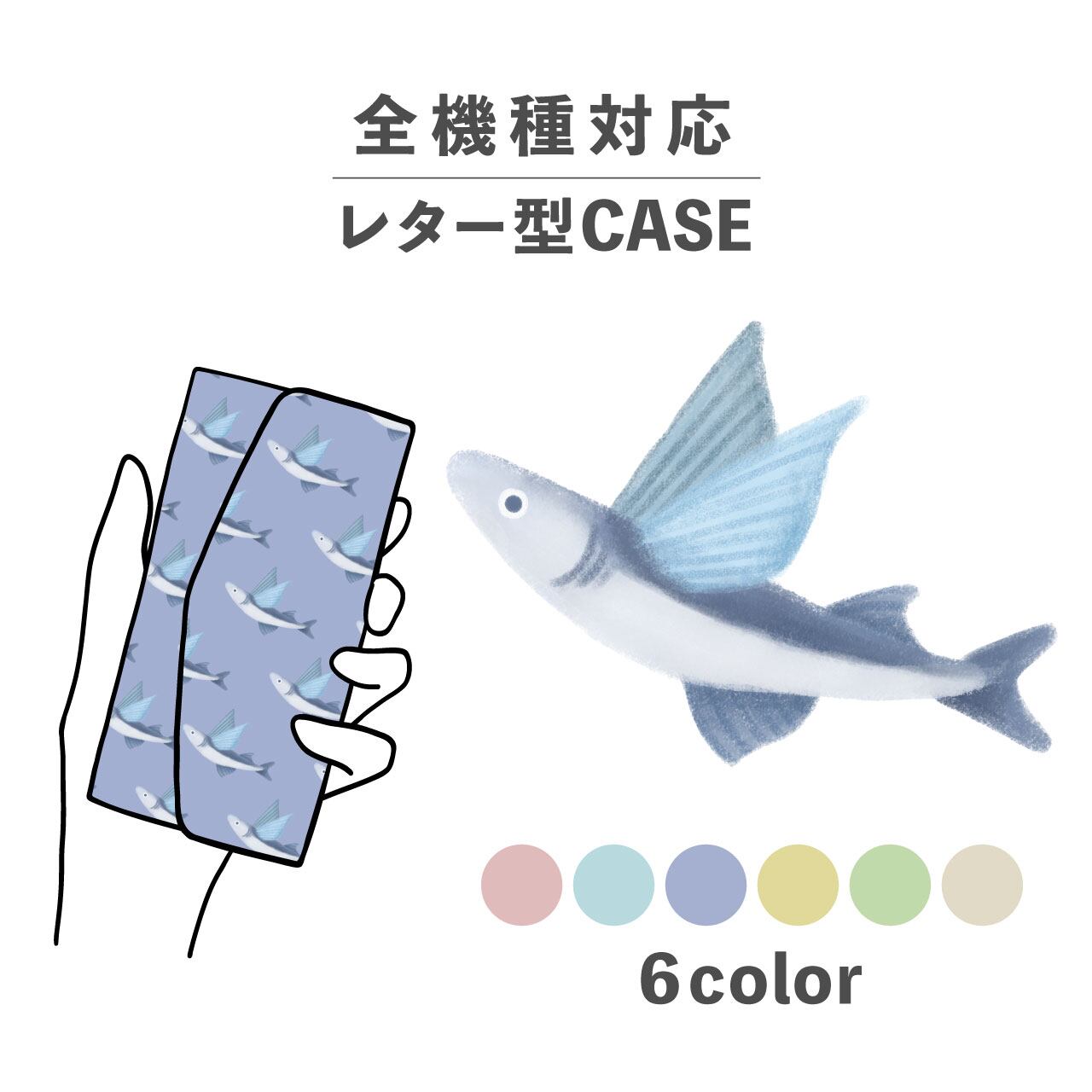 スマホケース手帳型 おしゃれ 韓国 可愛い なんでも対応 レター型 iPhone15 iPhone14 iPhoneSE Google Pixel エクスペリア ギャラクシー おもしろい トビウオ 魚 海の生き物 羽 ブルー イラスト 手書き くすみカラー パターン 総柄 色鉛筆風