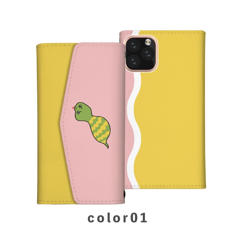 スマホケース手帳型 おしゃれ 韓国 可愛い なんでも対応 レター型 iPhone15 iPhone14 iPhoneSE Google Pixel エクスペリア ギャラクシー おもしろい ツチノコ 架空生物 動物 アニマル 神話 都市伝説 ゆる イラスト 手書き 爬虫類 グリーン